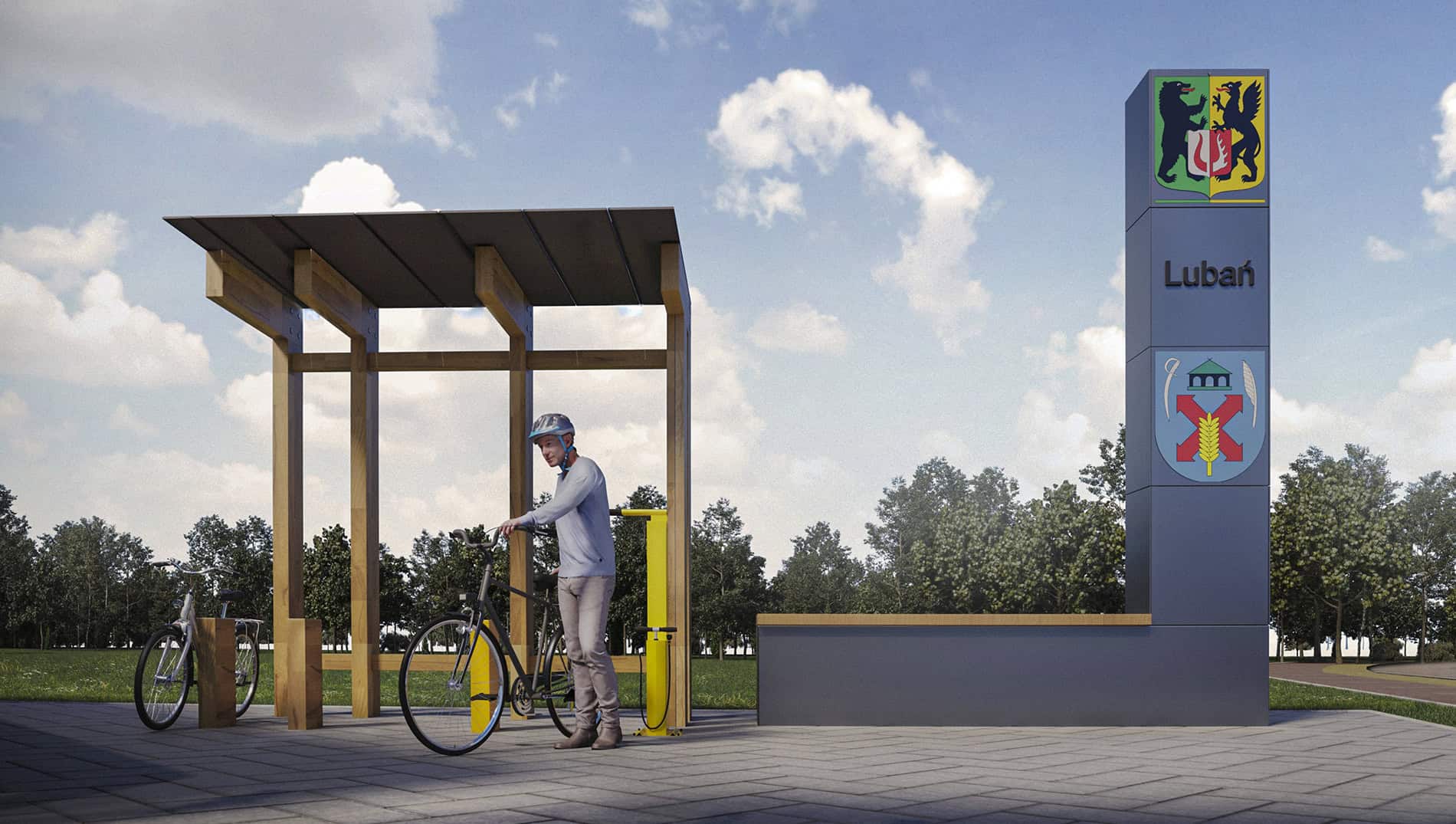 Zaprojektowany z myślą o wygodzie i estetyce – oferuje przestrzeń do odpoczynku i naprawy roweru w harmonii z naturą. Dużo rozwiązań technicznych takich jak pętla indukcyjna, liczniki oraz kamery z możliwością parametryzowania. Projekt architektoniczny z pełną dokumentacją branżową oraz projektem SIR (System Informacji Rowerowej). "O TYM MIEJSCU SIĘ MÓWI !"